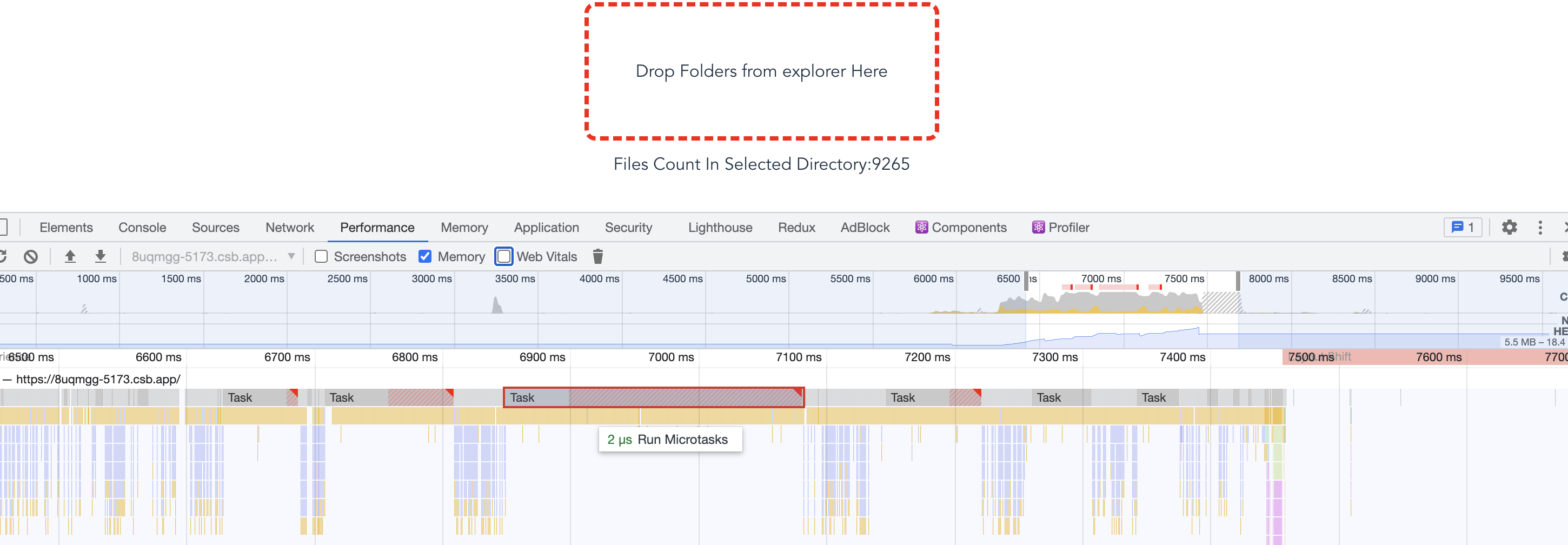 9k items - 9k function calls as a microtask.